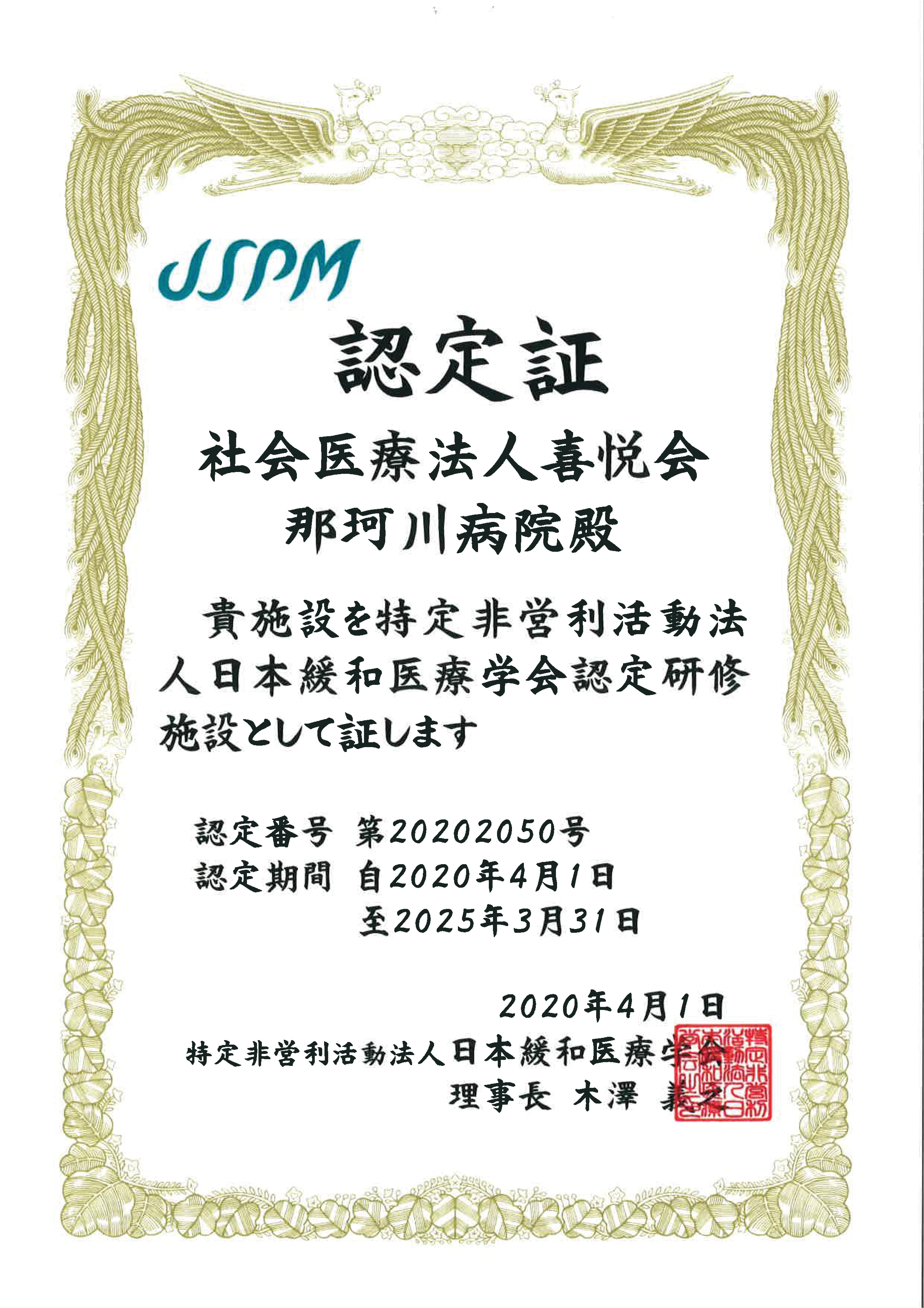 日本緩和医療学会 認定研修施設 認定のお知らせ