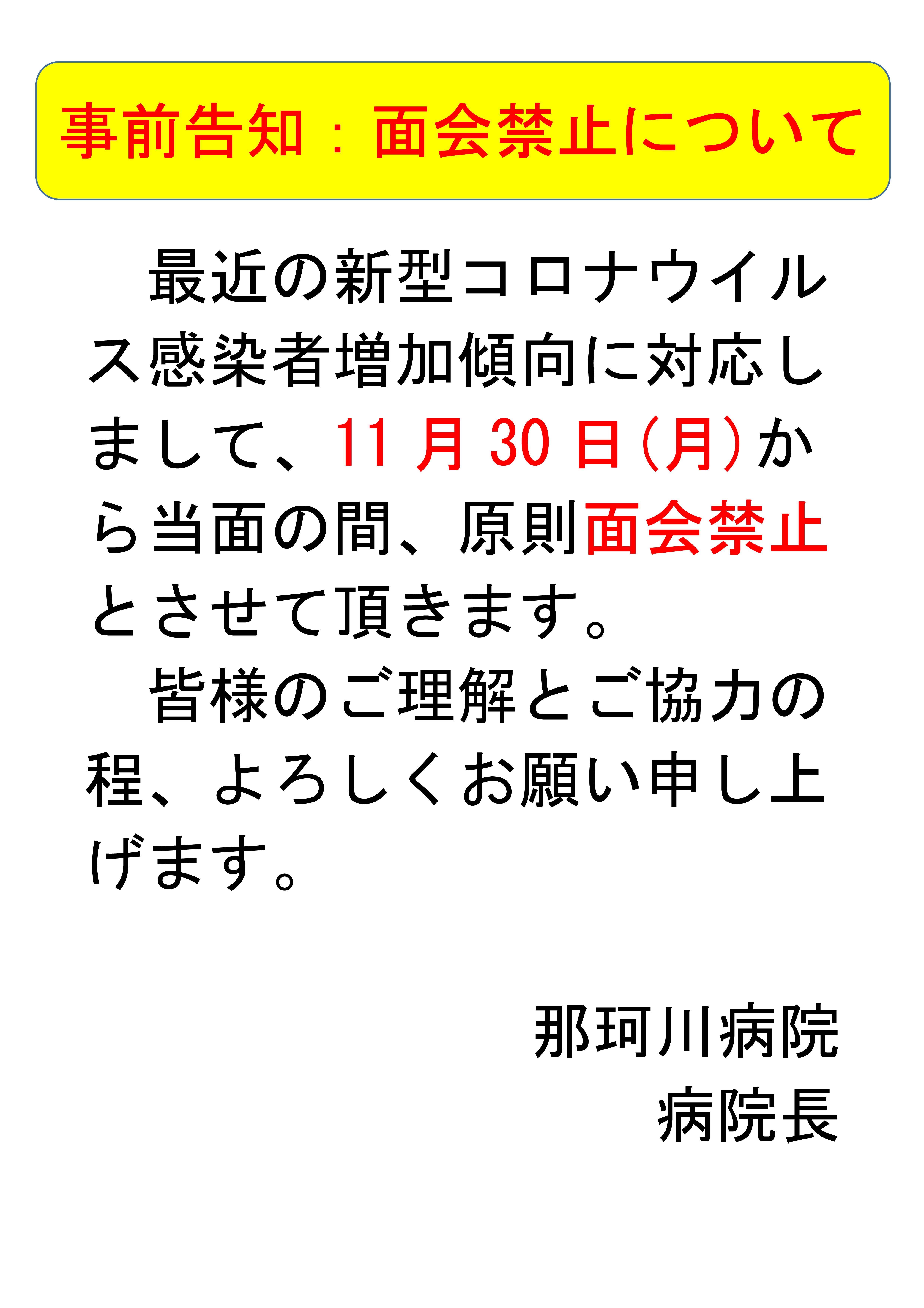 11月30日以降の面会禁止について