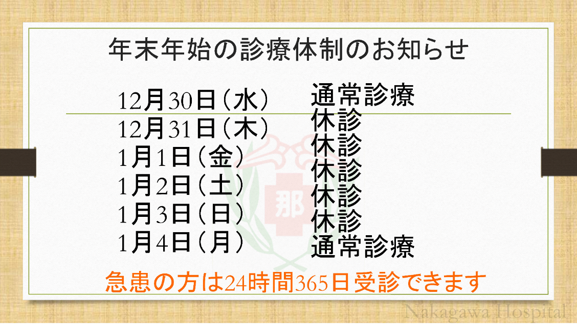 年末年始の診療体制のお知らせ