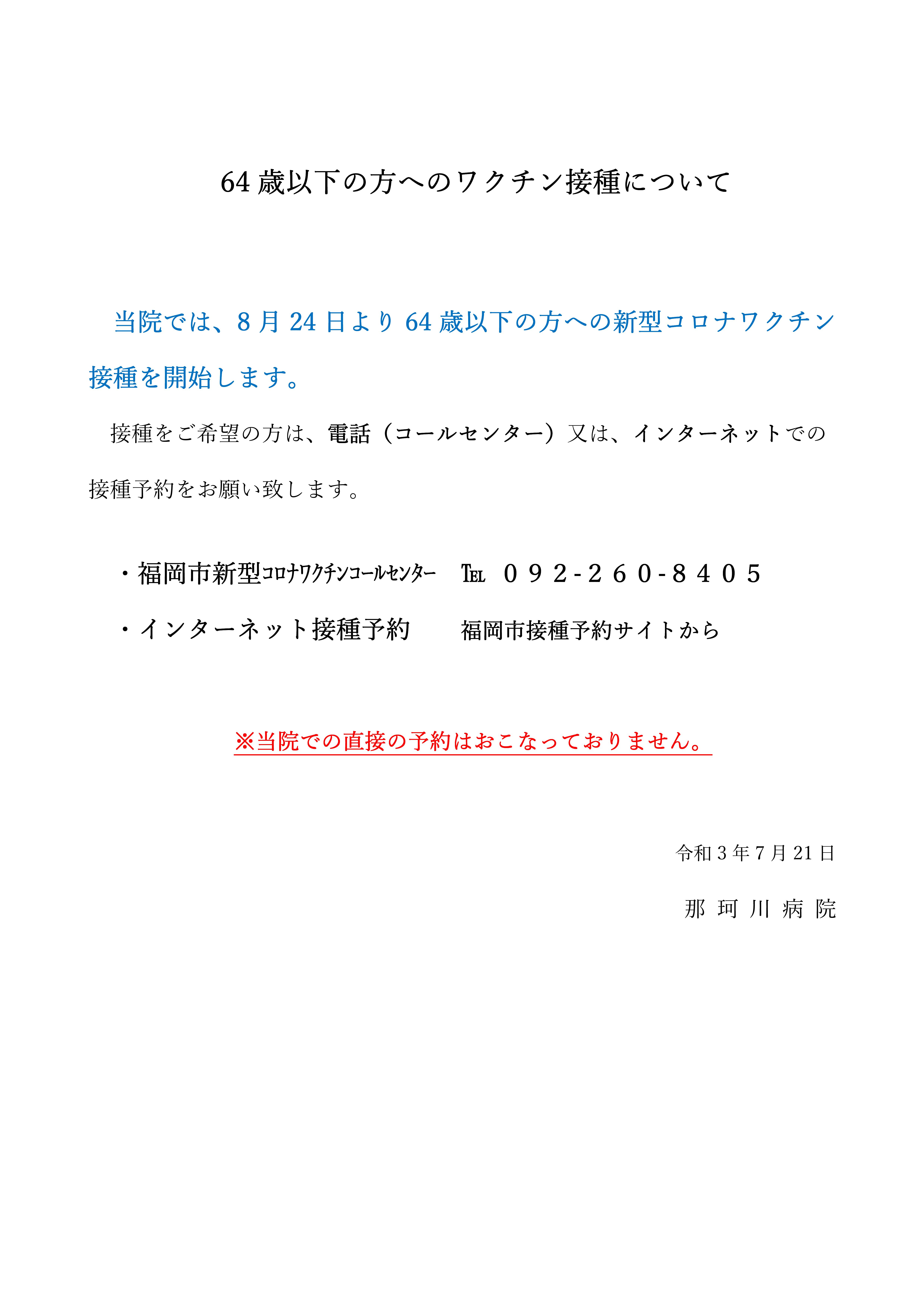 64歳以下の方の新型コロナワクチン接種予約について